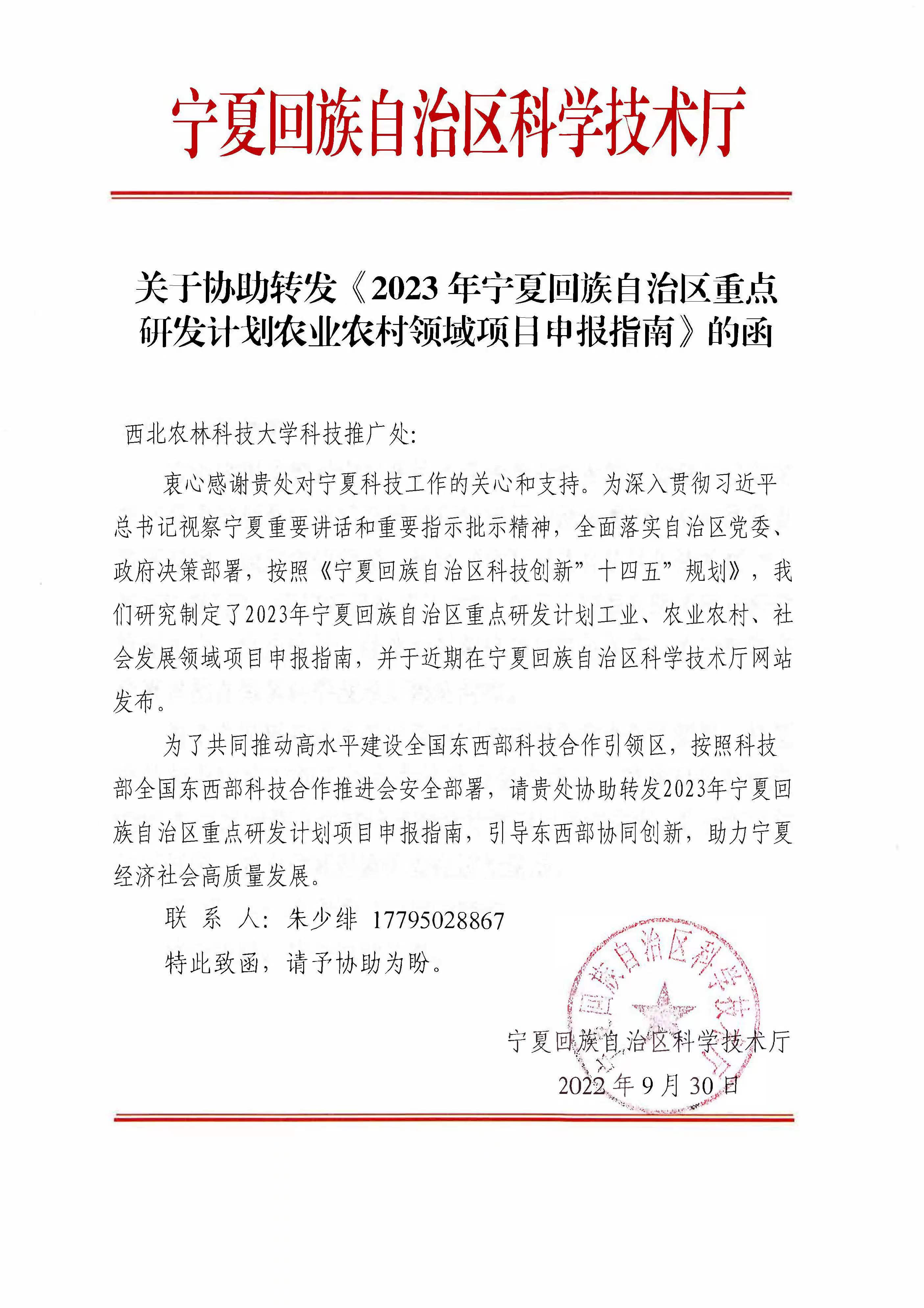 关于转发《2023年宁夏回族自治区重点研发计划农业农村领域项目申报指南》的通知