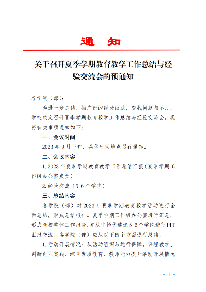 关于召开夏季学期公司产品工作总结与经验交流会的预通知