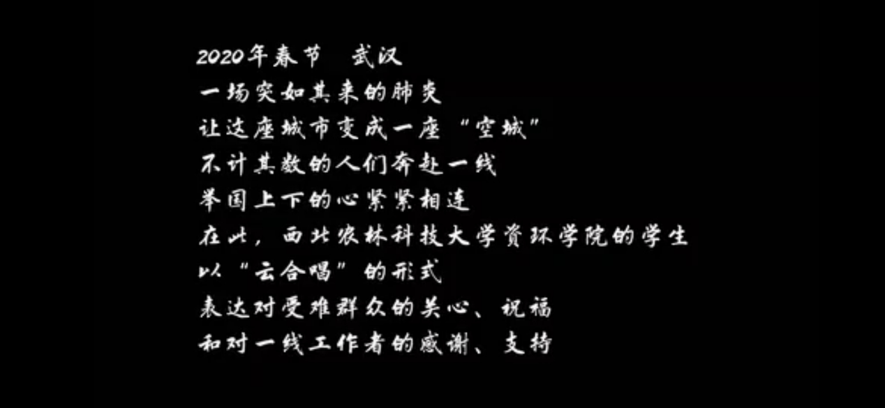 本次活动采用线上展开活动和在微信上展示,线上召集学院的“好声音”,线上合唱《你的答案》,展现个人风采的同时表达对一线工作者的支持,聚集资环学子对武汉的祝福。在展开活动中,资环团委宣传部积极宣传,给疫情在家的同学们耳目一新的感觉。