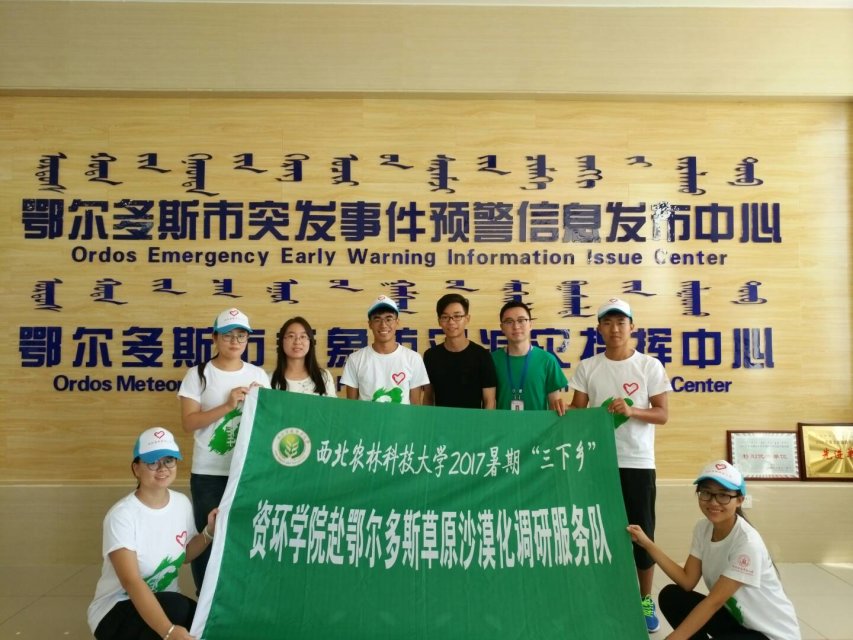 身在草原,自觉应为草原做贡献。在学校组织“青春中国梦 献礼十九大”暑期三下乡活动中,西农yl7703永利赴鄂尔多斯草原草草场退化调研服务队承担起探寻草场退化原因及宣传防治措施的任务,用自己的力量守护草原的一片绿色。两天时间里,西农学子走进鄂尔多斯气象局和杭锦旗气象局进行气候数据分析和询问相关人员。