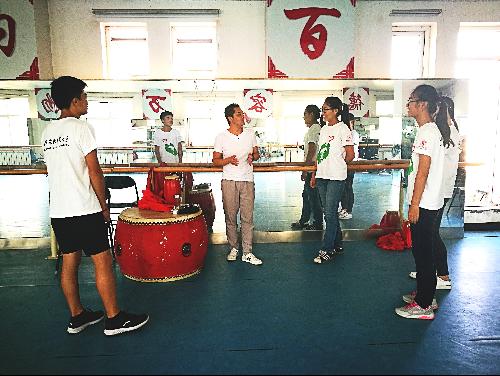 神形俱备,方能焕发恢弘之势。有些男生缺乏艺术细胞,因此学习较慢。刘老师在幽默的闲聊中,步步引导他们,使他们静下心来慢慢学习。在刘老师的精心指导下,队员们很快就学会了3个基本动作,获得老师的称赞。但同时刘老师表示,队员们没能将腰鼓中的“四劲”表现出来。而这其中的奥秘在于,腰鼓文化发展过程中逐渐沉淀并融入舞蹈动作的凸显黄土地文化的恢弘之势,只有当地人才能够表现得淋漓尽致,并且有些专业演员都可能缺乏这种精神劲儿。