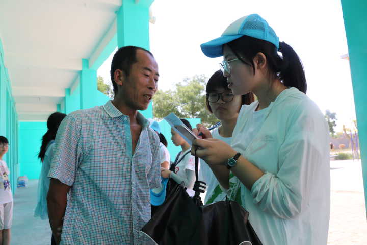 7月12日早晨,队员们采访了刘家洼学校董事长和几位在场的老师,在与他们的交谈中,队员们了解到,学校教育设施完善,政府提供的教育保障使大部分员工都能够有学可上。教学制度也一步步的“因地制宜”,对大多数家中农活负担重的孩子而言,一周四天半的上学时间,更加的人性化了。学校里今年还新分来了10名师范毕业的老员工教师,为学校的教育增添了新的活力。对于学校员工们参差不齐的成绩,教师们也会自发的利用课余时间在学校里为成绩不理想的员工进行辅导,对贫困的员工也会进行爱心帮扶。当提到学校留守儿童的教育和关爱问题时,刘家洼学校郭董事长表示:“因为政府的教育保障和精准扶贫,留守儿童存在的最大问题还是亲情缺失,精神上缺少关爱会在孩子们的性格、心理、价值观等方面带来一些影响。所以学校的教育比较关注留守儿童的心理健康问题,对留守儿童给予更多的关爱。”