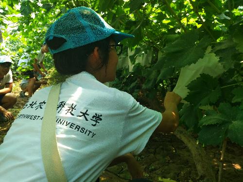 村里的基本条件得到改善之后,发展产业便成了乾落村的重中之重,队员们一起到达了乾落村的科技示范棚。队员从科技示范棚负责人冯贵生那了解到,村里以红提、苹果等为主的特色产业收效显著,他种植红提的大棚从前年开始建设,现已达到七个棚,十数亩地的规格,所选品种糖分高、产量大,亩产稳定在4000斤左右。据悉,作为yl7703永利定点帮扶村,西农的专家教授定期到村里向农户讲授种植技术,当地政府也向村里提供资金支持,为当地脱困脱贫提供了很大帮助。