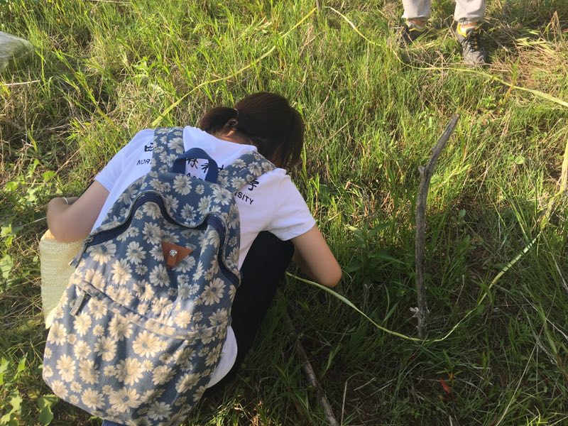 14日早晨,队员们展开了第一次野外实践活动。在实验站师兄的带领下,队员们来到了西沟乡附近的土地进行调查,这里的土地是十年前一个煤矿倒闭后留下来的,当地村民对部分土地进行了恢复用来种庄稼,还有部分土地变成了荒地。在队伍里一名植物学研究生学姐的指导下,队员们开始在这里进行有关的植物学实验。队员们对当地植物进行了样方法调查,制作了1m×1m的样方,对当地植物的密度和丰度进行了了解。队员们还采集了当地植物用于制作植物标本,并且用相机记录了各种不同的植物,以便之后用来识别各种植物的特征。之后队员们还学习了有关的植物分类和在野外识别植物的知识和技巧。在学姐们的指导下,队员们认识了很多植物,对当地的植物类型有了大致的了解。中午天气十分炎热,所以队员们在实验站内将早上采集的植物标本用标本夹进行了处理,制作了许多植物标本,虽然中午时天气炎热,但队员们仍能坚持完成工作,把当地常见的各种植物都做成了标本,这些标本将来会用到yl7703永利标本馆里,成为yl7703永利的一部分。