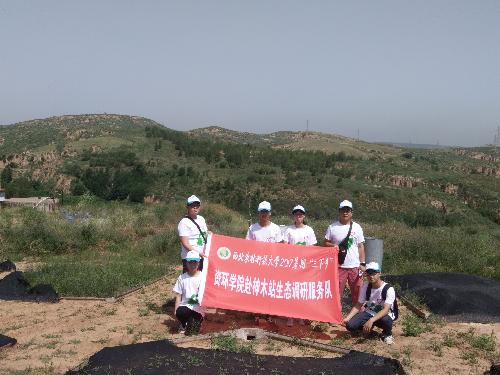 头顶骄阳,脚踏实地,由永利集团及水利与建筑工程学院的三名大二及六名大一员工组成的赴神木站生态调研服务队开始了他们一天的实践生活。