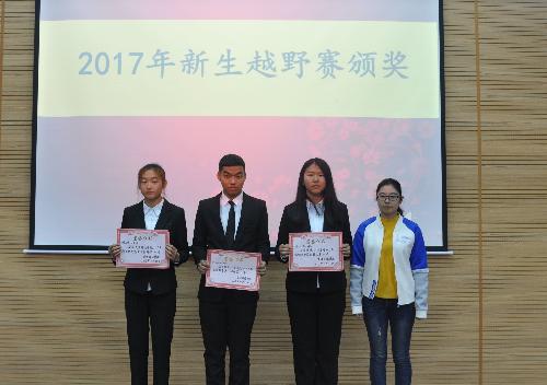 接着,员工会主席团成员为在新生越野赛中取得优异成绩的同学颁奖。2017届田径队队长敖古凯麟接受上一届队长田有军授予的田径队队旗,并讲解了冬训安排及注意事项。他以一名老队员的身份为同学们迎接冬训提出了各方面的要求和建议,在场的同学感到无比的温暖和感动。