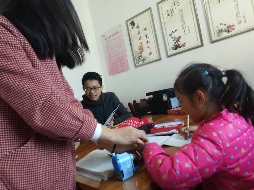 上午8点半小分队乘坐公交车前往了郭管村,郭管村的村干部接待了小分队,并把留守儿童关爱服务中心作为讲课的教室。小朋友大多数年龄较小、天性爱玩,学习对于他们来说是一个复杂的过程。在支教的过程中小分队采取了一对一的教学方式,极具耐心地给小朋友讲解拼音,一步步引导小朋友去思考。郭子萱小朋友才读二年级,乘法表对她来说都比较困难,一个简单的乘法,可能也要想很久。在辅导她时,小分队成员李佳欣同学耐心地给她讲解乘法口诀,用各种形象的比喻去引导她思考,最后成功地辅导她写完作业。李云飞同学感慨道“在支教过程中我们注意到,小朋友大多数都是奶奶在带,在农村这是一种普遍的现象,这也更加激起了我们的责任心,作为老员工我们应该有这样的责任感。我们已经坚持了半年时间了,基本上周末有时间我们都会去支教,我们可以感觉到,家长们十分地感激我们,这是对我们支教工作极大的肯定,觉得自己在做一件特别有意义的事情”。