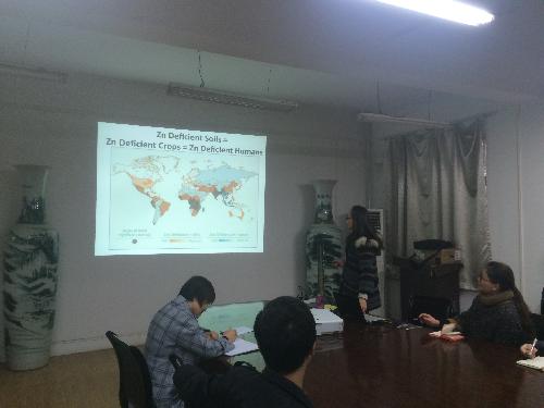 参加研讨会回国后,李萌和王少霞同学应学院邀请于10月30日在学院第一会议室做了题为“锌与氮磷肥配合喷施对冬小麦籽粒全粒及面粉营养品质的影响”的会议交流报告并和大家分享了参加国际会议的感悟。