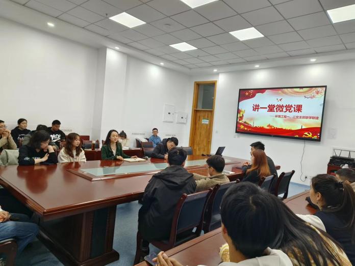 为鼓励党员同志以时政热点引领学习进程,进一步凝聚共识、激发奋进力量,持续推进支部融合共建。研究生环境工程一、二党支部联合开展“讲好一堂微党课”为主题的联学联建活动。支部全体党员、发展对象、支部书记吕凤莲同志和王刚同志参加。