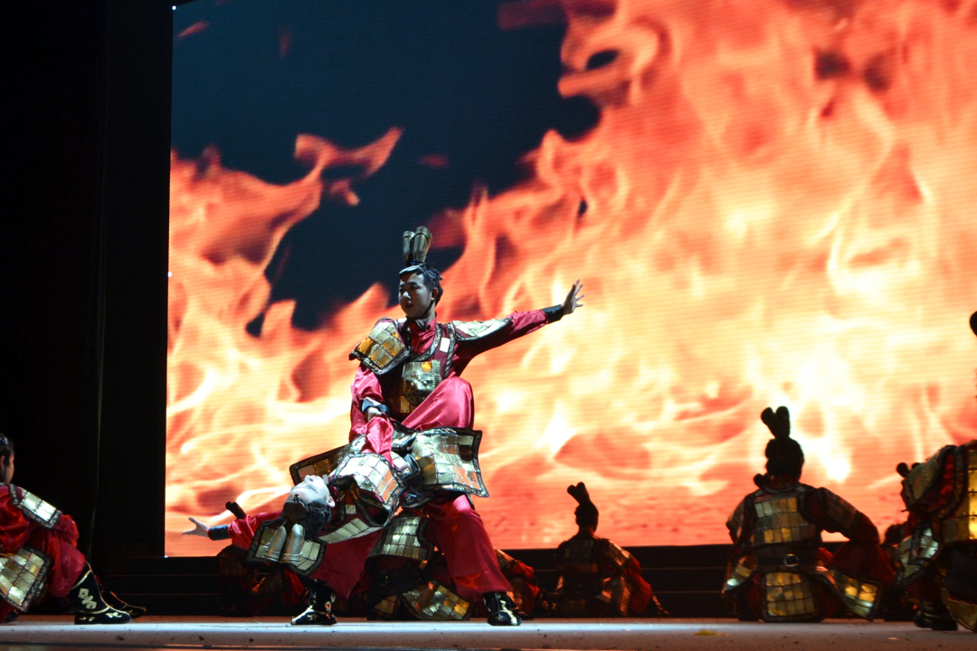 12月4日晚,一曲《东城决》轰动北绣舞台。资环男儿身披金甲,强大的气势震慑全场,灯光、背景、呐喊、眼神与舞蹈完美结合,展现出一幅鲜活的古代战场上将士们奋勇杀敌的场面。他们用实力证明了资环人的顽强与拼搏!