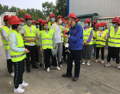 在工作人员的指引下,同学们学习了厂区安全规定,然后戴上安全帽,穿上防护服进入厂区依次参观了仓储车间、焚烧车间、稳定化/固化车间、物化车间、贵金属资源化利用车间、安全填埋场等。公司里很多危险废物处理的技术与设备的使用都很先进,有很多处理技术都是公司员工在实践中研究开发的,参观过程中,同学们通过提问的形式进一步将理论知识与实践应用融为一体。
