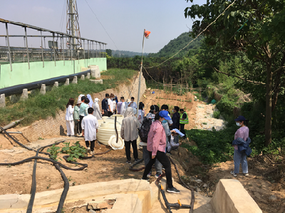 在参观垃圾填埋场时,同学们切身体会了为什么固体废物的卫生填埋方法会被逐渐淘汰。在工作人员的讲解下,同学们深刻理解了填埋场占用土地、后处理复杂、对土壤污染持久等这些缺点。该填埋场引进了一套渗滤液处理系统,工作人员介绍了处理流程,带领我们参观了这套渗滤液处理系统的设备。在经过收集、调节、DTRO二级过滤处理后,渗滤液被净化到了饮用级别。在渗滤液中不能被净化的部分,也可以再次回流进行二次处理。