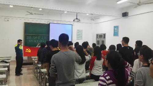会议首先,组织全体参会党员,面对党旗,进行庄严宣誓,重温入党誓词。宣誓仪式结束后,全体党员在会上进行默写入党誓词。