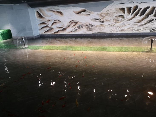 图3渗沥液处理后的中水养的金鱼图4师生与技术人员交流