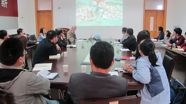 访问期间,Graham Lyons博士在yl7703永利作了题为“Using a Food System Approach to Improve Nutrition in Pacific Islands”的学术报告。Graham Lyons博士介绍了与yl7703永利植物营养学术团队合作的历史渊源以及合作完成的Harvest-Plus项目中的试验部分,回顾了共同进行的试验工作,详细介绍了他在所罗门群岛负责进行的红薯养分强化的试验过程和部分结果,指出橘色果实作物如红薯、香蕉和玉米的有益作用以及部分元素强化效果。与会师生深受启发并与Graham Lyons博士进行了深入的交流和讨论。
