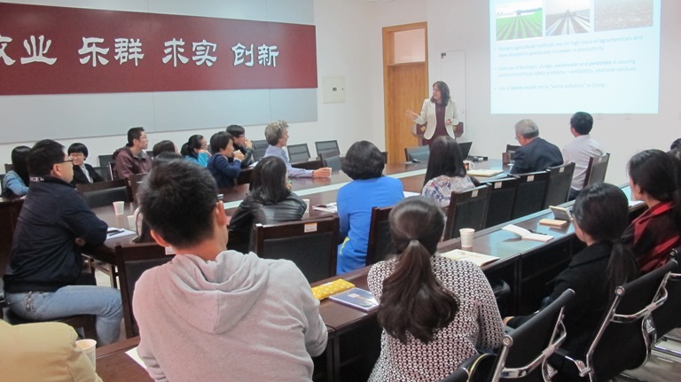 Coen Ritsema教授做了题为Global assessment of potential measures against erosion的学术报告,并介绍了瓦赫宁根大学的简要情况 。Violette Geissen教授以 Healthy soil-health people: A transdisciplinary approach为报告题目,介绍了自己的科研进展情况。接着,老师们就自己感兴趣的科研问题进行提问,专家也给予详细的解答。同学们就瓦赫宁根大学接收职工等情况进行了咨询。