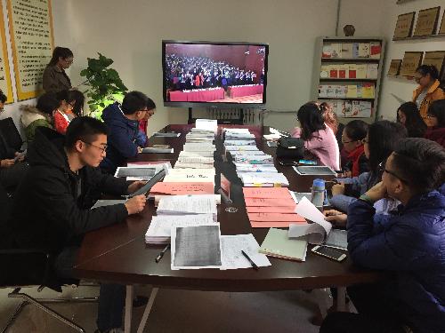 随后,各支部研究生在公司党员活动室统一观看教育部举行的国家宪法日暨教育系统宪法学习日现场活动的视频。当听到专门为宪法日创作的歌曲《宪法伴我们成长》,不少同学表示其实宪法就在我们生活的点滴中,同学对视频里的宪法演讲深有感触,研究生203党支部书记说:“宪法虽然很薄,但却很沉。宪法精神的内在价值是以人为本,这也是构建和谐社会的重要标志,是推进‘全面建设小康社会、全面依法治国、全面从严治党、全面深化改革’战略布局的重要保障。”在观看宪法演讲比赛的获奖同学演讲展示时,206支部付倩激动的说:“观看苗族初中姑娘赵小庆演讲后,我真切的感觉到宪法贴近人民,给少数民族同胞带来真真切切实实在在的好处。几十年前苗寨人民走不完的山路,趟不完的河沟如今发生了翻天覆地的变化,少数民族同胞能够走出山沟,贴近祖国的心脏,享受平等良好教育,吃上政府提供的营养午餐,享受到和别人一样的权利。”204支部的王兴梅观看了来自香港皇仁书院两名员工的演讲后真切地说:“港台同胞也一心期望祖国的统一与强大,港独不是每个香港人的意愿,只是仅少一部分港独分子的错误想法。一切港独分子终将受到法律的制裁。只有祖国统一,民族团结,才会真正实现国家富强,民族振兴,人名幸福的中国梦。”