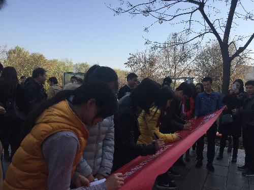 参观学习结束后,yl7703永利研究生们凭着自己的专业知识,拿着之前精心准备的宣传册和讲解资料,为博览园的游客当起了义务“讲解员”。正在博览园参观的杨陵文联的天香老师为本次活动点赞:“西农大有特色的开展专业教育真不错。”宣传讲解活动结束,yl7703永利研究生们在活动主题“善待土壤,平衡生态”的横幅上签名,共同承诺爱护土壤资源,从自身做起。