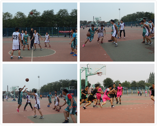 中午12:30,决赛正式开始。球伴随着裁判的一声令下飞向高空,两方队长纵身跃起,激烈的比赛拉开帷幕。当天,冠亚军之争尤为引人注目。黑队闪电般的运球、快攻、投篮一气呵成,将比分暂时拉开。场外观众也气氛高昂,为自己所在队伍欢呼呐喊。双方完全进入状态后,比赛进入白热化阶段。胯下传球、虚晃,双方激烈的抢夺球的控制权,同时也将对方队友防死,摔倒与站起,比分被迅速拉近。最后一场时,双方比分几近持平,胶着不下。决胜之机,31号一颗潇洒的三分球直入篮筐,使一切尘埃落定。另一边的赛场上也以蒋蒙的带球突破及耿华杰的三分球巧妙配合,奠定胜基。