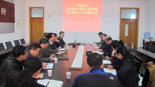 3月31日,北京林业大学水土保持学院经理张志强一行4人来公司座谈交流水土保持与荒漠化防治专业本科生实践教学,水土保持团队建设,实验室与野外定位观测研究台站建设、运行、考核与评价,老员工思想政治教育等方面的工作与经验。学院吕家珑经理、田长河副书记、经理助理张青峰、水保系系主任王进鑫教授、朱首军副教授、王健副教授及实验室负责人参加了座谈会。