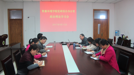 4月12日下午,根据公司党委安排,党政综合办公室全体人员在学院第一会议室进行政治理论学习。会议由教工综合支部组织委员严小良同志主持,其他全体院领导和办公室人员及辅导员参加了学校政治理论学习辅导。