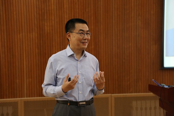 任理以“文章千古事,得失寸心知”为序曲,拉开了饱和水力传导度的测定对于理解和模拟田间尺度水文过程重要性的序幕,深入探讨了双环入渗仪的尺寸对水力传导度测量的影响。利用详细的数值模拟研究,阐明了在非均质土壤中双环入渗仪的内径尺寸与水力传导度测量的关系。通过大量形象的图片展现了所用实验设备—双环入渗仪的设计技巧和测量精度,并就实验场地的选择、实验资料的处理技巧、定量化模拟土壤中饱和水力传导度的尺度效应、研究过程中的体会和收获等问题与大家进行了深入探讨。希望广大学子保持高度严谨的治学态度、实事求是的科研作风,努力进取,严格要求自己,做好今后的研究工作。