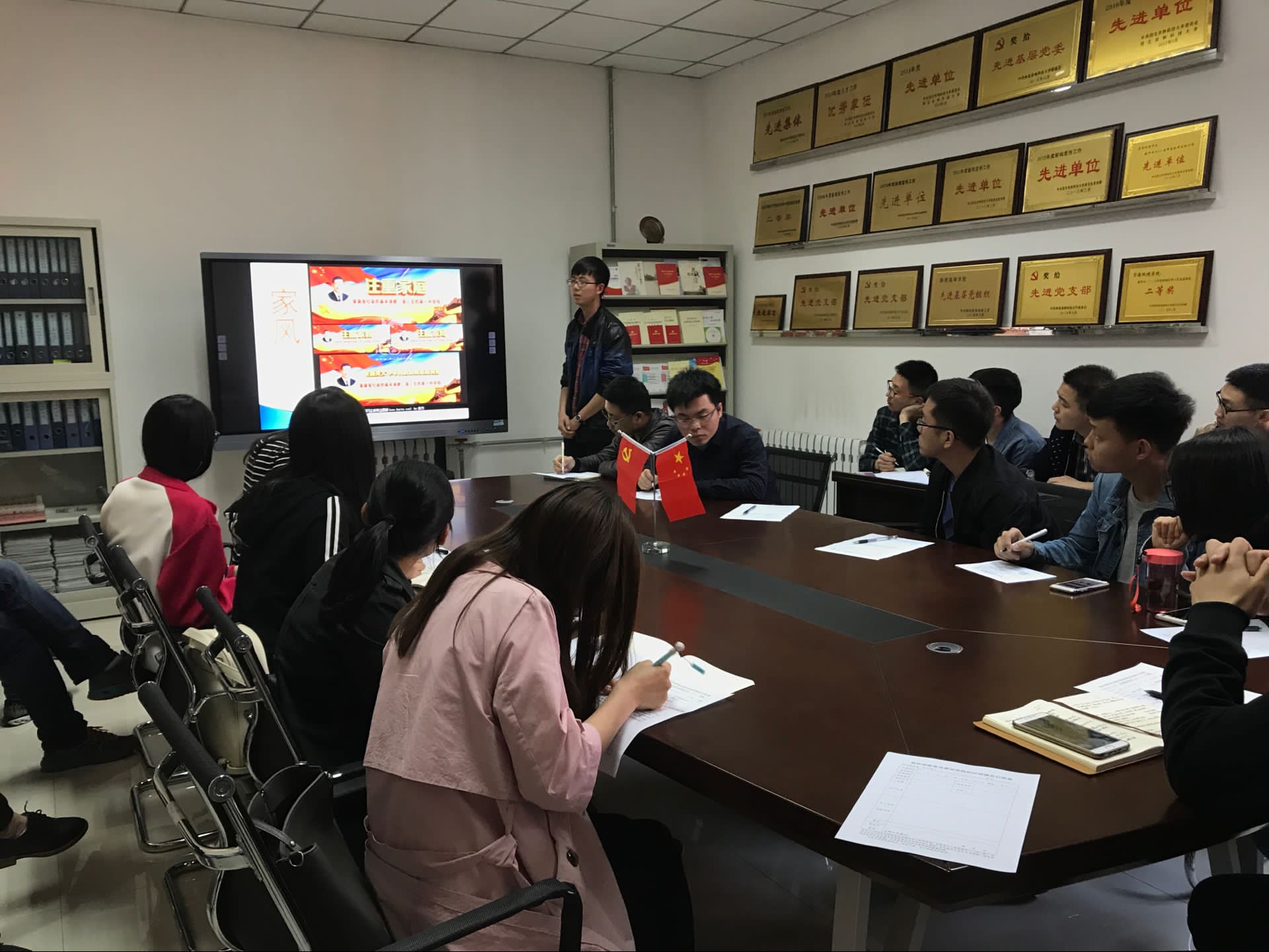 “家风正,则后代正,则源头正,则国正!”家风是家族子孙世代相传的具有鲜明家族特征的家庭文化,是每个家族成员自豪感的源泉,是每个家庭成员“三观”的基石。为教育引导支部党员在良好家风的熏陶中养成修身律己、崇德向善的优良作风,4月27日下午4:00,硕士生第四党支部在学院308党员学习室开展了以“我是党课主讲人之家风”为主题的系列活动。本次活动由组织委员谢婷主持,周晓燕,刘洋等5位同志主讲,支部指导老师李腾参加本次组织生活。