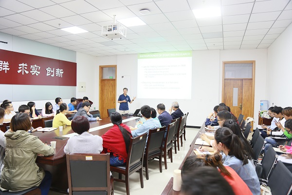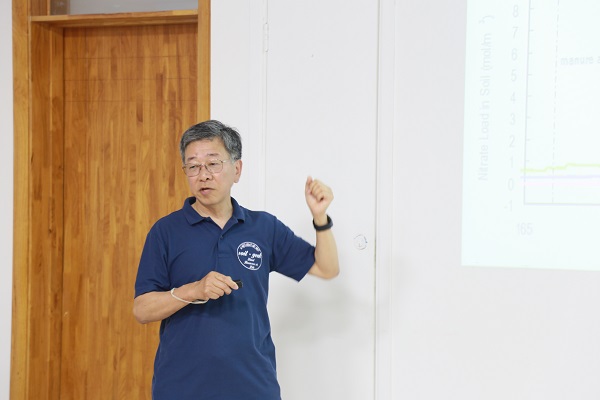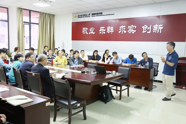 在访问期间,KosukeNoborio博士在yl7703永利作了题为“Greenhouse gas research in agricultural fields”的学术报告。农业生产活动是温室气体的重要来源之一,KosukeNoborio博士介绍了如何采用涡旋积累技术(REA- relaxed eddy accumulation)以及封闭室法测量施用牛粪的日本草地以及日本和菲律宾稻田的农田温室气体(CH4、CO2、N2O)通量。他们的研究发现在施用牛粪的火山灰土草场中,温室气体的主要成分为NH4+,硝化和返硝化过程同时发生并伴随着 N2O气体的排放。而在低地稻田中,REA法能够测量中小尺度的平均温室气体通量,而覆盖在水面上的封闭室能够测量通过扩散作用或经气泡携带的温室气体通量。由于日本和菲律宾气候差异,稻田可能成为碳源或碳汇。土壤温度的升高和大气压力的降低促使更多气泡的形成,而水稻根系附近的CH4被氧化成CO2。最后KosukeNoborio博士介绍了最新的涡旋积累技术(REA- relaxed eddy accumulation)在西太平洋上测试结果。报告会现场气氛活跃,与会者纷纷表示深受启发,并就自己感兴趣的问题与Noborio博士进行了深入的交流和讨论。