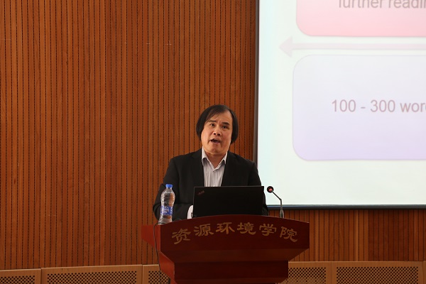 会上,HuuHao Ngo博士作了题为“如何用英语正确撰写高质量的研究论文?”的讲座,他以介绍悉尼科技大学(UTS)为开篇,强调写好一篇英文文章的关键因素是“新想法”,随后分别介绍了英文文章每一部分的注意事项和写作方法,并列举了若干正面和反面例子,给在座师生留下了深刻的印象。最后,HuuHao Ngo博士送给大家一句话:“你一定要记住,你比你想象的要坚强、强壮、聪明”。之后,HuuHao Ngo博士与大家作了精彩的互动。当被问到“写一篇英文文章能不能先写成中文,再翻译成英文”时,HuuHao Ngo博士斩钉截铁地做出了否定的回答,并语重心长地说:“一定要以英文拟首稿,这样才能提高英文写作水平”。