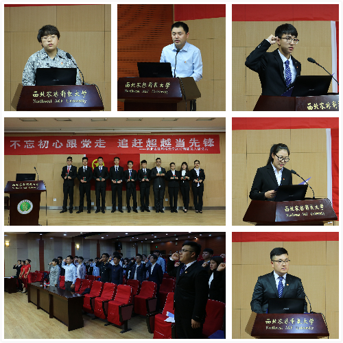 伴随着新团员们嘹亮的国歌声,入团仪式正式开始。刘庆麟宣读了新团员名单,并与高媛老师共同为新团员代表颁发团章和团员证,佩戴团徽。紧接着,校团委组织部部长陈光宇带领所有新团员在团旗下庄严宣誓。入党介绍人代表王洁琦宣读了《团章》中团员的义务与权力。