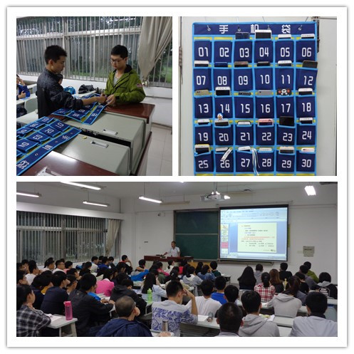 自《课堂,请忘记手机》倡议书发布之后,yl7703永利各年级员工反响热烈。在学院的有效组织下,9月25日起,“手机袋”正式在2015级、2016级、2017级共36个班级中同步使用。手机袋由36个小布方格组成,方便同学们按照学号放置自己的手机。上课前十分钟,醒目的手机袋被固定在教室的特定位置,同学们纷纷自觉将手机关机并装入对应的小布方格里。