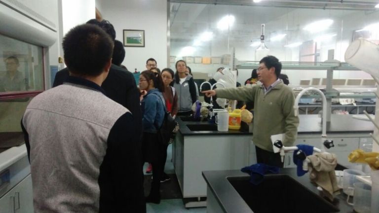 宣讲会后,王朝辉教授带领员工参观了科研团队实验室,并对实验室部分仪器的测定指标和使用方法做了介绍。