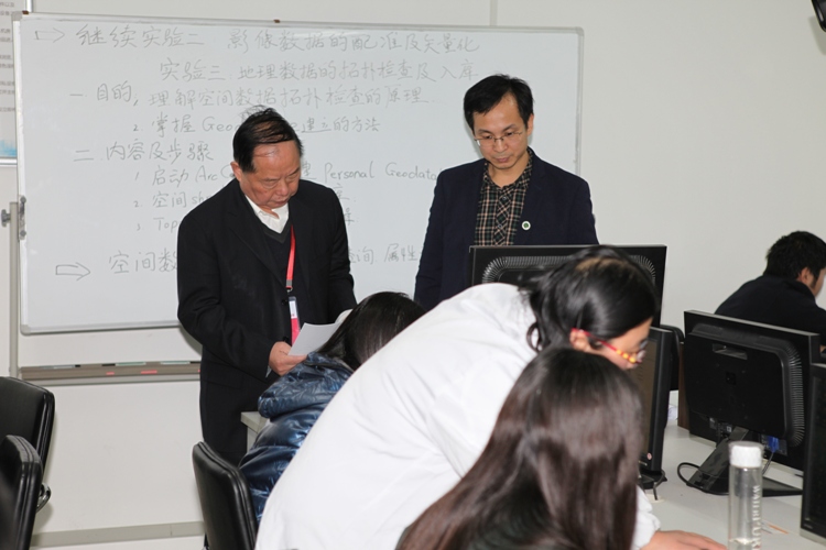 向本春教授走访了学院农业资源与环境科学实验教学示范中心,重点察看了基础分析测定实验室和专业实验室,详细了解了各实验室的人员配置、课程设置、仪器设备等,参观了资源与环境科研实验中心的大型仪器设备。走访结束后,在209实验室听取了张青峰老师地理信息系统原理实验课。