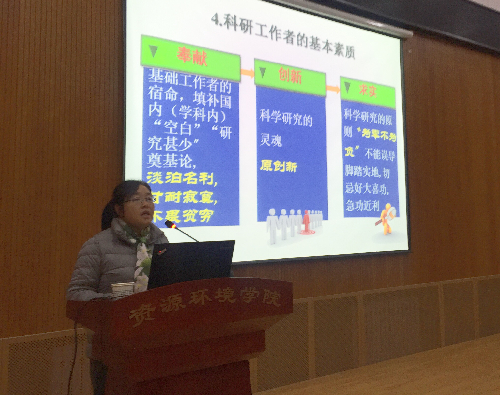 会后,17级土壤学博士研究生王志康和梁楚涛就自己平时科研工作遇到的问题与梁冬丽老师展开深入交流。梁东丽老师深入浅出,幽默风趣的报告方式得到了同学们一致好评。17级硕士研究生孙晓璐谈到:“聆听梁老师的报告,感觉受益匪浅,幻灯中幽默生动的动画深深的吸引着我,整个报告下来,既是一种视觉上的享受,更是一种思想上的净化,使我认识到我们做科研的,不在乎你做了多少事,也不在乎你犯了多少错误,更不在乎你的数据与理论值有多大偏差,我们要的是最真实的数据和最真实的结果,也许我们会遇到无数挫折和失败,但是我们一定要诚实,要踏实!”17级硕士研究生杨明喜谈到:“听完梁老师的宣讲会,我感受深刻。做科研是一个探索发现问题、提出假说、设计实验、验证假说、得到结论的漫长过程,要扎实走每一步,打好基础。作为一名初始阶段研究人员,我们不仅要多动脑思考,有清晰的逻辑、辩证的思想,还必须要有奉献、创新、求实、求是的精神,做到联系实际,求真务实,宁零勿负。”