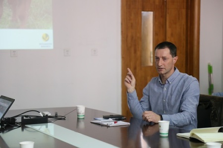 报告会上,Tom教授首先介绍了洛桑试验站的基本情况以及相关研究内容,并结合其研究方向对全球范围内N不同形式的转化,及中国地区氨排放进行了概述。进一步对农场下的氮肥利用效率(NUE)进行细致的预测分析,并对如何降低N损失从而提高氮肥利用效率提出了相关氮肥管理措施,报告结束后,师生们就关于N转化方面的若干具体问题、以及如何降低N损失等方面进行了深入的交流和讨论。