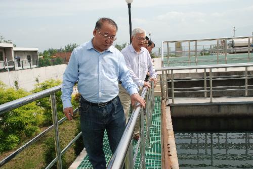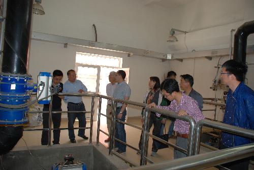 在公司于刚经理的陪同下,参观了公司四水厂的净水处理工艺,涉及絮凝、沉淀、过滤、消毒等处理单元运行状况,同时参观了供水调动管理系统、加药间、化验间、污泥处理间等。