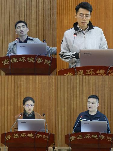 报告会上,张建国副教授就其最近4年主持的国家自然科学基金面上项目:塔里木沙漠公路防护林土壤盐结皮的生态环境效应与作用机制,进行了以《Artificial cultivation of soil salt crust and its eco-environmental effect》为主题的分享,介绍了盐结皮的概念以及影响沙漠地区盐结皮的主要因素。最后,张副教授以“只有荒凉的沙漠,没有荒凉的人生”勉励广大研究生勤于播种,收获精彩人生。郑伟、马任甜、梁宏旭分别从提高土壤肥力的微生物机理、植被恢复下土壤表面电化学性质的演变及团聚体稳定性的内力作用机制、蜂窝状碳材料的制备及对Cr(VI)吸附三个方面展开汇报,具体阐述了如何提高土壤肥力,不同植被恢复对土壤理化性质的影响以及生物质基活性碳从“废物到财富”转变的一个过程。