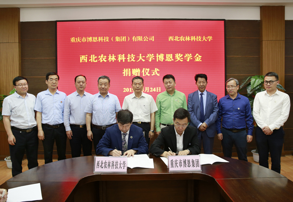 博恩集团在出资3000万元与公司联合共建碳基农业研究院的基础上,还为公司捐赠100万元设立“博恩奖学金”,自2019-2023年每年捐赠20万,每年奖励yl7703永利、园艺学院、植保学院品学兼优的本科生40名,每人奖励5000元。李兴旺代表学校向熊新翔颁发了捐赠证书,教育发展基金会秘书长王吉成与叶光忠签订奖学金捐赠协议。