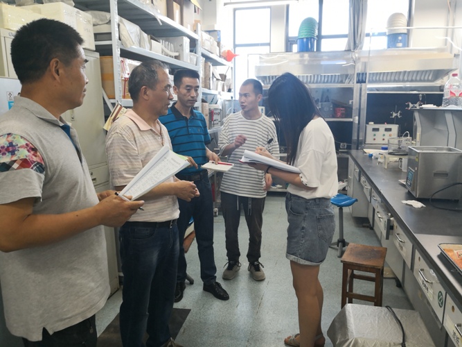 2019年6月13日下午,根据“安全生产月”有关要求,由任武刚副经理、实验室副主任刘思春、行政秘书严小良、安全员王永一组成安全检查小组,对学院管理区域、办公场所、实验室等进行了全面彻底的安全检查。检查中发现,学院办公楼消防通道基本通畅,消防器材、警示标志放置到位。实验室环境卫生状况良好,化学试剂特别是剧毒等危险化学品的管理和使用科学规范。对于个别实验室存在的问题进行了现场督促整改。