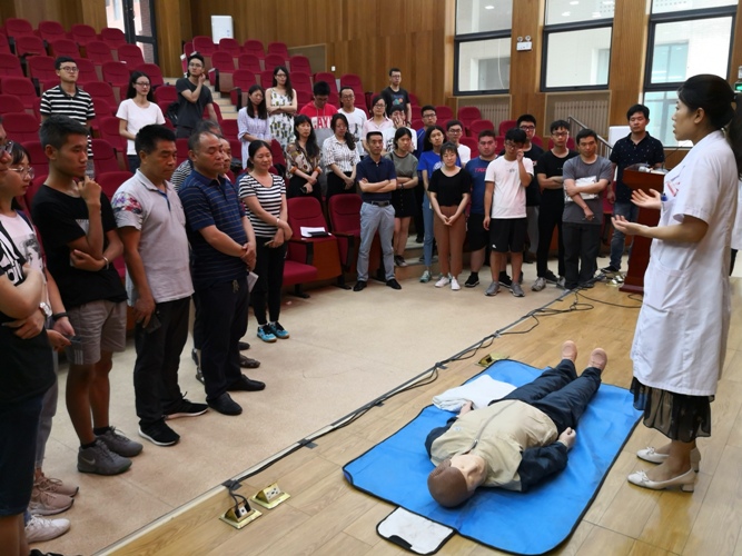 6月26日下午,学院邀请校保卫处王云峰副处长以及校医院陈宁主任、王化明大夫,在yl7703永利报告厅对应急救护队员进行了基本技能和专业知识培训。内容包括医疗基本知识、紧急包扎处理和心肺复苏按压、初期火灾扑救、消防器材的使用等基本技能。6月28日yl7703永利开展消防应急疏散演练,应急救护队积极参与,在演练活动中发挥了较大的作用,在实践中锻炼和提高了队伍的应急救护能力,为日后工作的开展积累了经验。