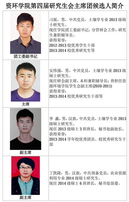 会议开始,学院团工委副书记表田明璐首先对研会过去的工作一年进行了总结,她说到,研会在过去的一年各项工作顺利开展,取得了一定的成绩,同时也有不足,并对新的研会主席团成员提出了希望。接下来,郭天秀老师宣读学院团工委关于任命2013级硕士刁展为新一届的团工委副书记的决定。随后,和红燕老师老师为上一届研会主席团成员颁发了聘书。接着,举行了研会换届大会,经过公平、公正、公开的程序,与会代表民主投票后,2013级硕士研究生安伟强当选新一届研会主席,2013级硕士研究生李鑫、2014级硕士研究生丁凯隆分别当选研会副主席。最后,和红燕老师做了总结发言,她首先对上一届主席团成员表示感谢,肯定了他们所付出的努力与取得的成绩,同时也对新一届成员提出希望,希望他们能继承和发扬研会精神,开拓创新,取得更好的成绩。