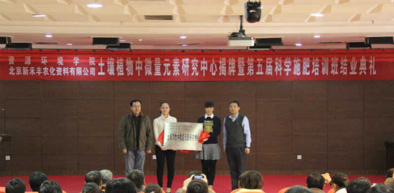 1月9日下午,“土壤作物中微量元素研究中心”在永利集团成立。该中心由北京新禾丰农化资料有限公司和yl7703永利合作共建,是学校第一个专门针对微量元素肥料的理论和实践问题而建立的研究单位。