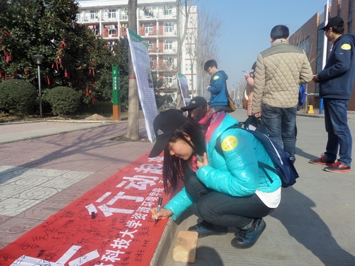 中午,yl7703永利研究生会与员工会分别在南、北校利用图文并茂的展板、直观的宣传单以及醒目的条幅等开展了土壤日宣传及保护土壤宣誓签字活动。他们着重对土壤日的由来、土壤污染现状及治理过程中的难度等知识进行了宣传。过往同学表示收益匪浅,并在活动现场的宣传条幅上签名。