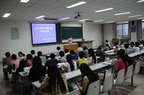 6月10日晚,yl7703永利研究生会在3T22教室组织承办了“2014届研究生毕业生经验交流会”。学院100多名2012级学术型硕士研究生及2013级专业学位硕士研究生参加了此次经验交流会。