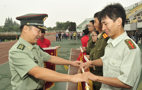 在军事汇报表演中,公司新生以整齐的步伐、响亮的口号通过主席台接受检阅。分列式结束后,公司女生进行了队列操汇报表演,队形最后展示的“XN80”,表达了对学校建校80周年的祝福。学校也对公司新生军事训练给予了肯定,公司被评为“内务卫生先进单位”、“军事表演先进单位”和“军事训练先进单位”。