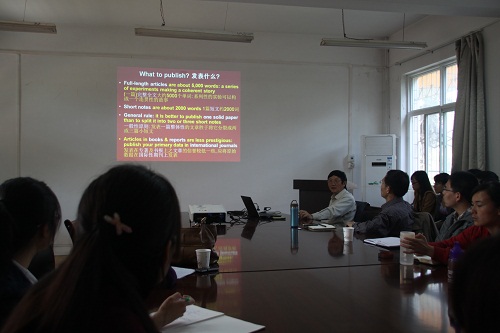4月27日上午,应公司周建斌教授之邀,西澳大利亚大学的何新华副教授为公司研究生和青年教师们作了题为“How to write papers for international journals”的精彩报告。何新华副教授于澳大利亚昆士兰获得博士学位后,先后在美国、日本和澳大利亚等国家进行研究学习,其主要研究方向为菌根生理生态,在菌丝网络在生态系统氮素双向转移方面取得突出成就,发表高水平文章数十篇,并与Plant and Soil的主编Hans Lambers合作编译了《如何写好英文科学论文》等书,多次就英文论文写作方面做过报告。