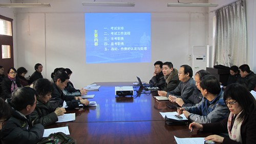 2012年秋期末考试将于2013年1月21日–24日分别在南北校区同时进行,公司此次参加考试的员工班共129次,涉及考试课程25门。为了加强期末考试的组织与管理,确保考试工作的顺利进行,1月18日下午,公司在学院第一会议室召开了2012年秋期末考试考前动员会,全体主考老师、监考老师、巡考人员参加了此次会议,会议由主管本科教学的高亚军副经理主持。