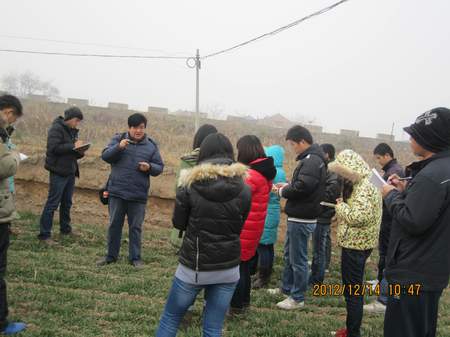2012年12月14-16日,公司土壤学、土地资源与空间信息技术等专业2012级25名研究生在任课老师王益权、学院中心实验室王永一和研究生管理办公室任晓萍等老师的带领下赴渭南县交口灌区、大荔县八鱼乡、朝邑、沙湾以及盐池凹、合阳甘井乡旱原生态试验站及洽川湿地、富平县卤泊滩等地进行为期三天的研究生《土壤退化修复与重建》课程校外教学实习,这是公司首次开展研究生校外课程实习工作。