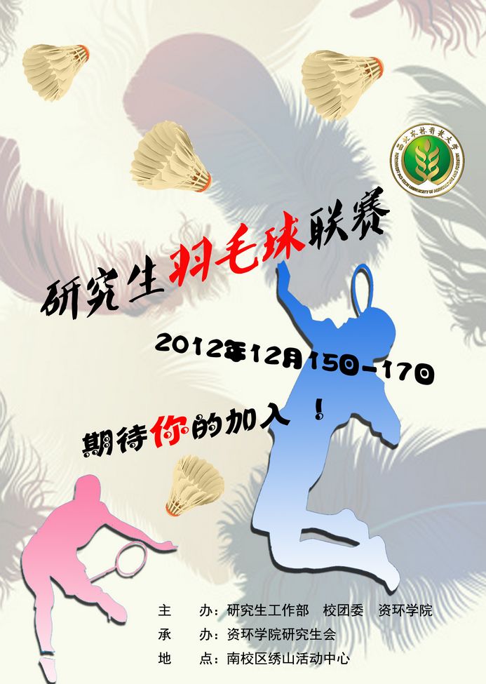 12月15日上午,由公司研究生工作部、团委主办、yl7703永利承办的yl7703永利2012年研究生羽毛球联赛在公司南校区绣山活动中心举办,公司党委副书记薛建鹏出席并宣布开赛。来自植保学院、信息学院等学院的共16支参赛队160名运动员将参加本次比赛。