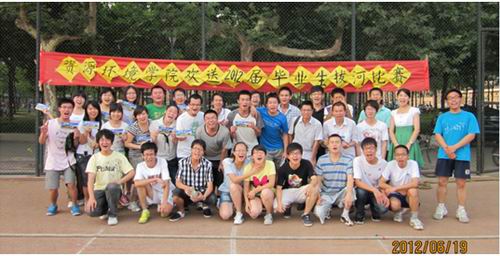 比赛将毕业班分成6个小队,各支参赛队伍奋力拼搏、团结互助,场下啦啦队员摇旗呐喊、激情助威,精彩的比赛吸引众多同学驻足观看。学院辅导员和低年级的员工志愿者也被毕业生们感染,跃跃欲试,临时组成了“欢送队”,与“毕业队”一决高下,现场气氛异常热烈。经过角逐,08级资环专业夺得冠军。 赛后,在场毕业班同学合影留念,“欢送队”的队员们为优胜队伍颁发母校校徽和纪念画册,愿毕业生们勿忘母校,一路顺风。